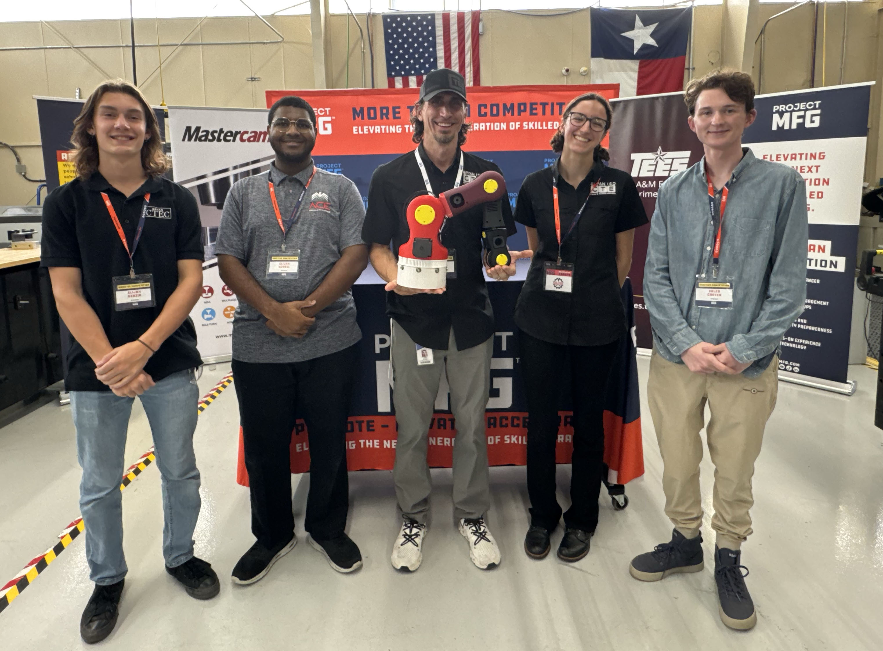 The competition featured 7 High-School and college level teams: Bryan ISD CTE Center from Bryan Texas, John Jay High School from San Antonio Texas, LBJ High School from Austin TX, Ben Barber Innovation Academy from Mansfield Texas, Farmersville High School from Farmersville Texas, Keller Center for Advanced Learning from Keller Texas, and our host Texas A&M University from College Station Texas. Each team demonstrated their expertise in problem-solving and precision manufacturing within a rigorous and competitive environment. This year's Additive project challenge is to manufacture and assemble a 5-axis robotic arm to the specifications provided by the Project MFG competition team.